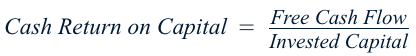 The equation I use for calculating the cash return on capital is: