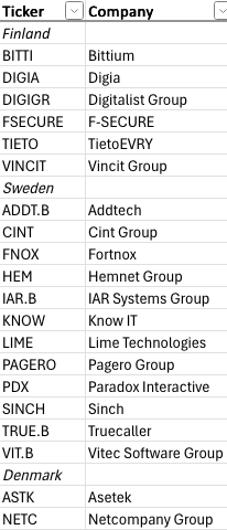 I recently ran a screen across publicly listed software companies in the Nordics to identify businesses with durable economics and attractive long-term growth characteristics. From the initial universe, a subset of companies passed a first-stage filter focused on are they in the Nordics and are they selling software.