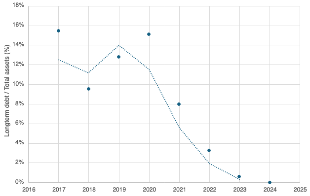 Long-term debt as a percent of assets has plummeted over the last few years.