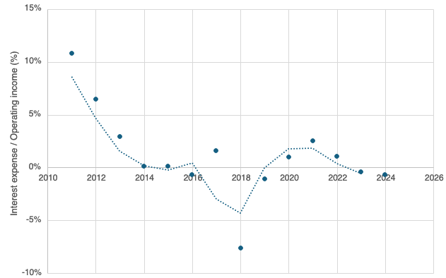 This has led to the interest the company pays on its debt also dropping.