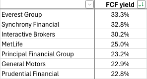 - We will start with something simple. The below is a list of the companies in the S&P 500 with the highest FCF yield.